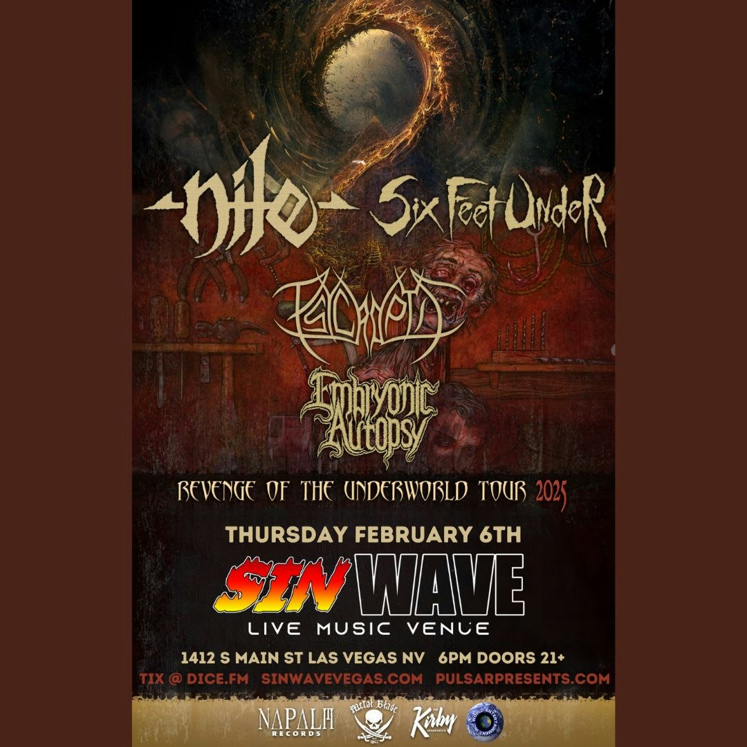 NILE and SIX FEET UNDER bring the Revenge Of The Underworld Tour to Las Vegas! With special guests, PSYCROPTIC and EMBRYONIC AUTOPSY!